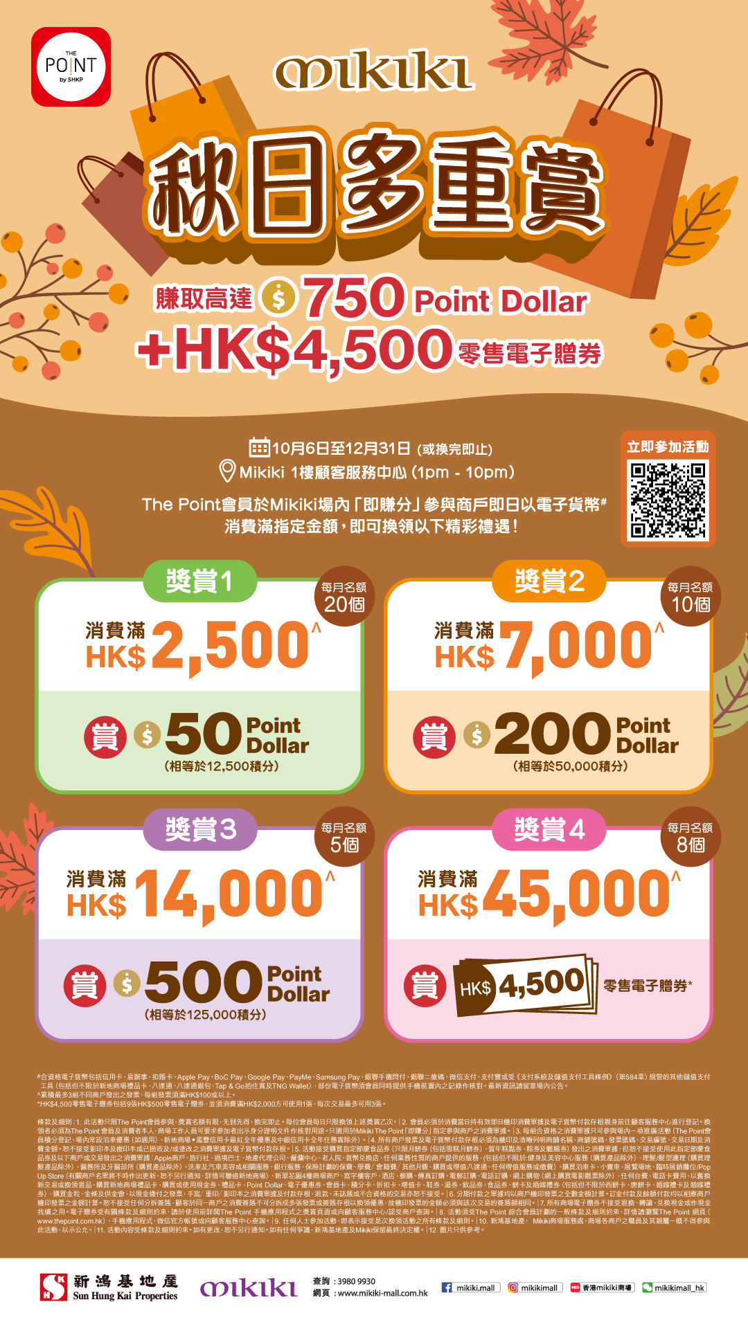 From 6 Oct - 31 Dec 2025, The Point members can redeem the following rewards with same-day electronic spending of a designated amount at Mikiki!