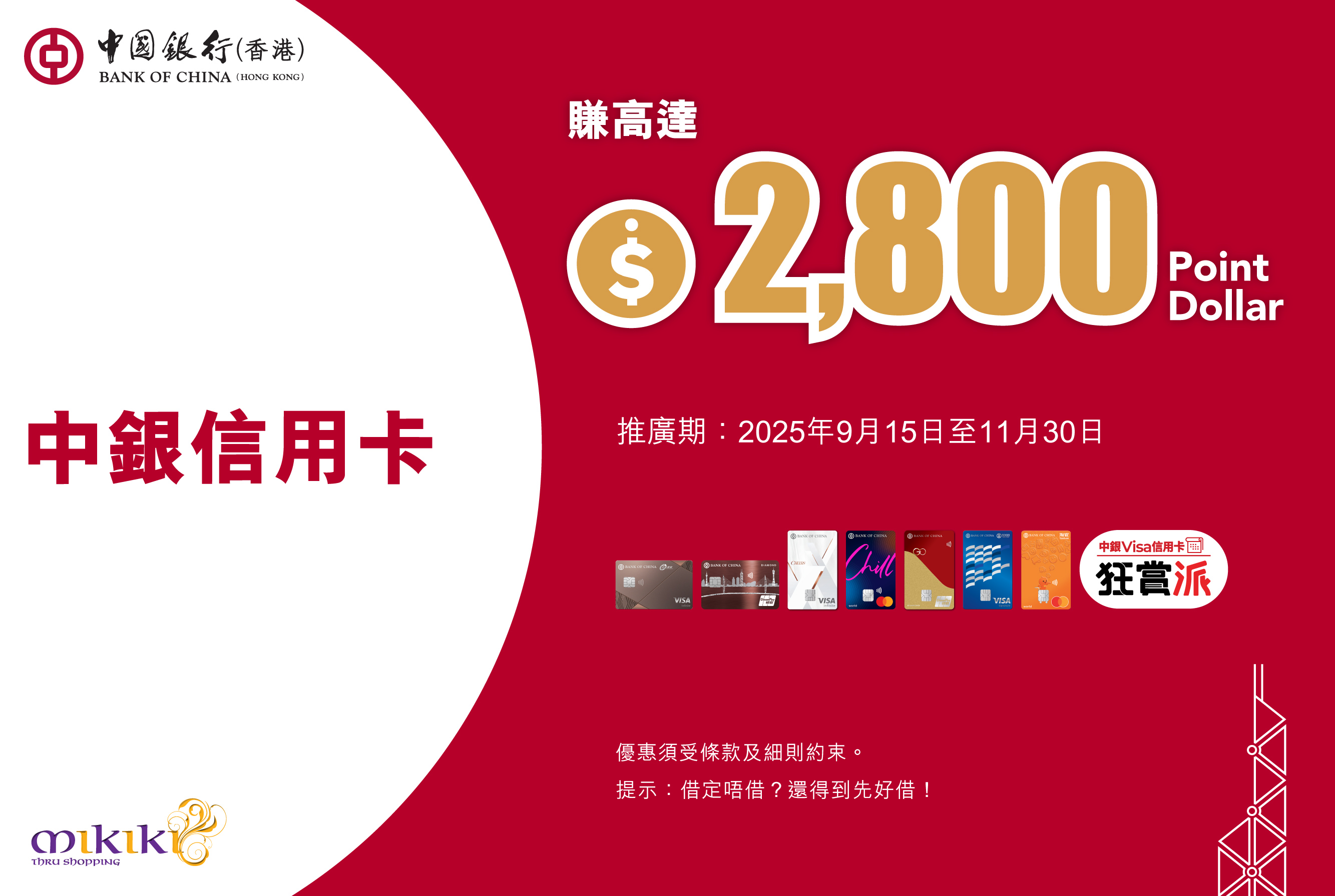 中银信用卡 ● 赚高达$2,800 Point Dollar